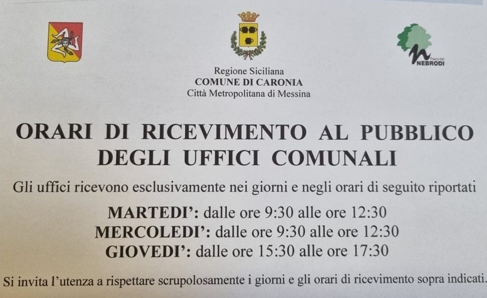 Nuovi Orari degli Uffici e numero unico centralino: 0921 305000